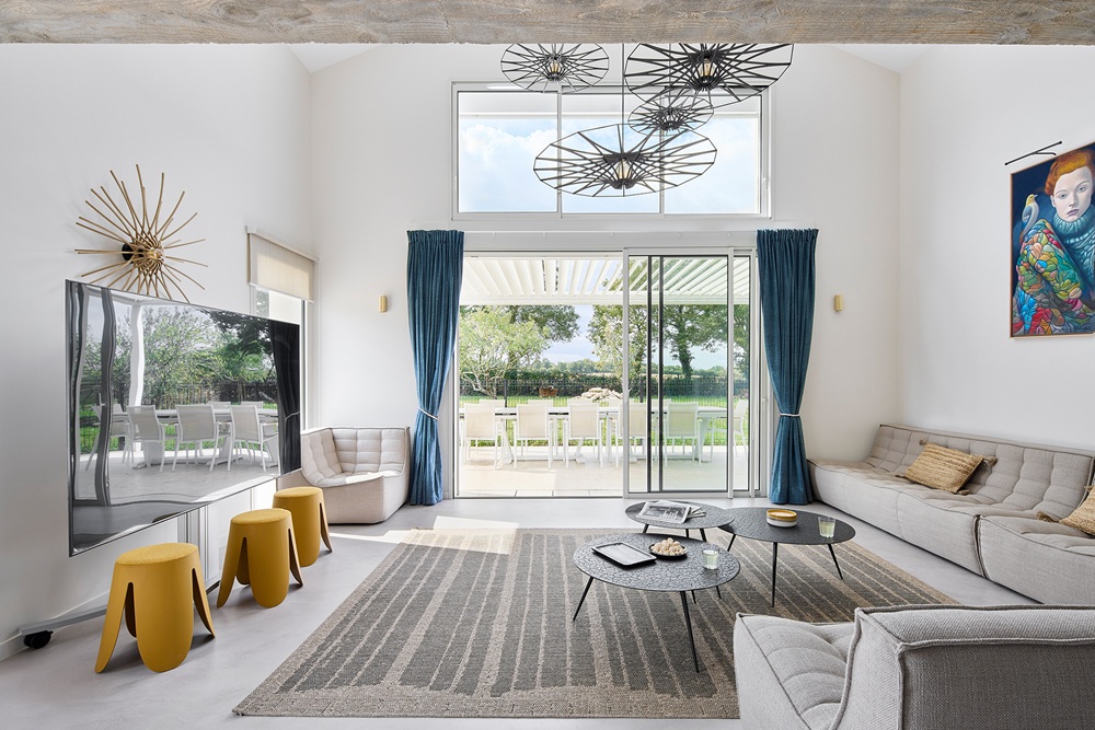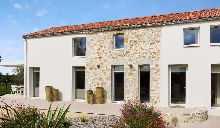 La Maison est une ancienne bâtisse en pierre, restaurée avec soin dans un style contemporain épuré. Elle offre un cadre à la fois authentique et raffiné. Alliant volumes lumineux et confort soigné,  chaque espace a été conçu dans un style sobre et raffiné, mettant en valeur les matériaux nobles, et les volumes généreux du lieu.